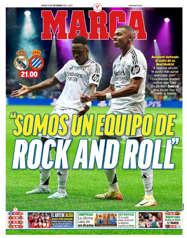 Carlo Ancelotti dejó tres acordes de guitarra a lo Jimi Hendrix para explicar el ritmo que desea para el equipo: “entretenido, vertical, con intensidad”. Justo lo que los aficionados echamos en falta en este arranque de temporada: un Born to run que no llega, o no llega a todos los jugadores a estas alturas del calendario, un Hurricane (que no Harry Kane) que todos anhelamos ver, en definitiva, convertir el Bernabéu en un Highway to hell para los visitantes. El visitante de esta noche no es otro que el Real Club Deportivo Espanyol de Barcelona, que llegará a un estadio en el que, paradójicamente, desaparecerán el rock, el pop y el reguetón (¡gracias!) durante una temporada, por obra y gracia de una normativa que no cumple prácticamente ningún recinto de la capital.