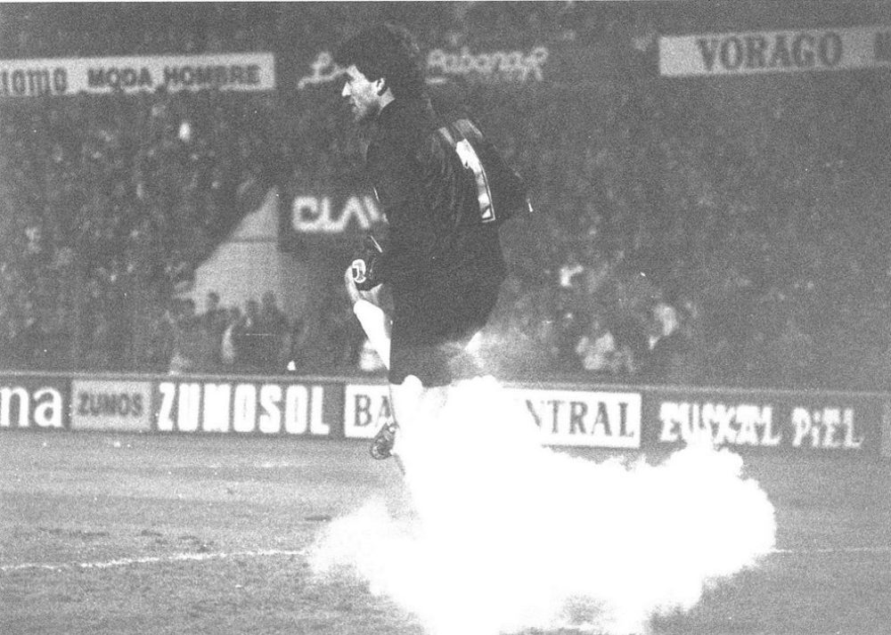 En octubre de 1986 los tristes protagonistas fueron Jorge Valdano y Ricardo Gallego, que fueron alcanzados por distintos objetos. Al argentino le cayó un tornillo en la cabeza mientras que al “Soso” le impactó una castaña en un ojo. El encuentro terminó con victoria por la mínima para los locales y ambas agresiones ocasionaron el cierre del estadio por un partido.