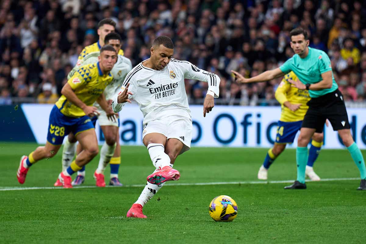 Hay más pruebas de que Kylian está aprendiendo a bailar sevillanas, fíjense en la mano derecha del 9 vikingo en el momento del lanzamiento del penalti con el lacraba su primer triplete con el Real Madrid.