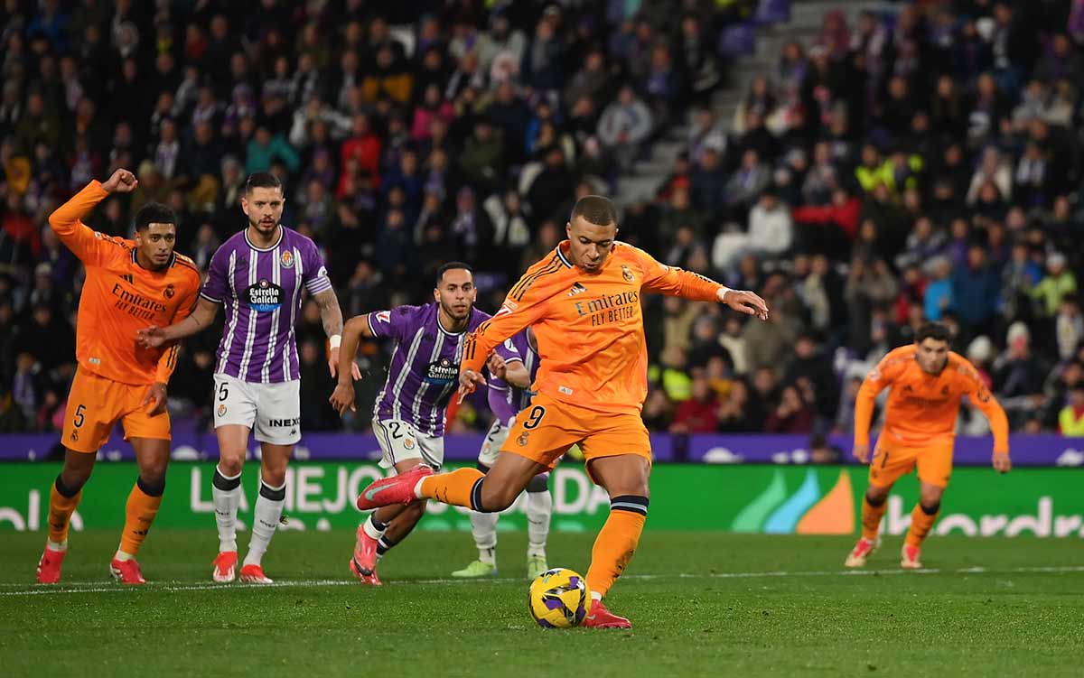 Frente al Valladolid, Mbappé puso en práctica las habilidades flamencas aprendidas y adoptó la postura necesaria para embocar de primeras a gol tras una pared con su pareja de baile del primero de la noche: Bellingham.