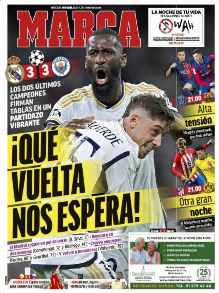 "Un partido cañón", titula As. Hemos visto titulares mejores, pero también es cierto que las palabras se quedan cortas para expresar la grandeza del fútbol disfrutado ayer.