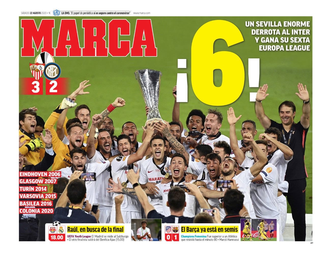 Para que alguien se atreva a decir que esto no es el mejor periodismo del mundo. ¿Qué periodismo puede provocar estos patéticos impulsos de inspiración? ¿Puede el Sevilla ganar su sexta Europa League y cualquier periodista acordarse del Real Madrid? No. Esto sólo lo pueden hacer los mejores. Los mejores apartan la noticia para ir a su grano (al del periodista, queremos decir). El mejor periodista del mundo siempre va a la esencia de las cosas y siempre encuentra al Real Madrid. Observad esta obra menor pero señera: