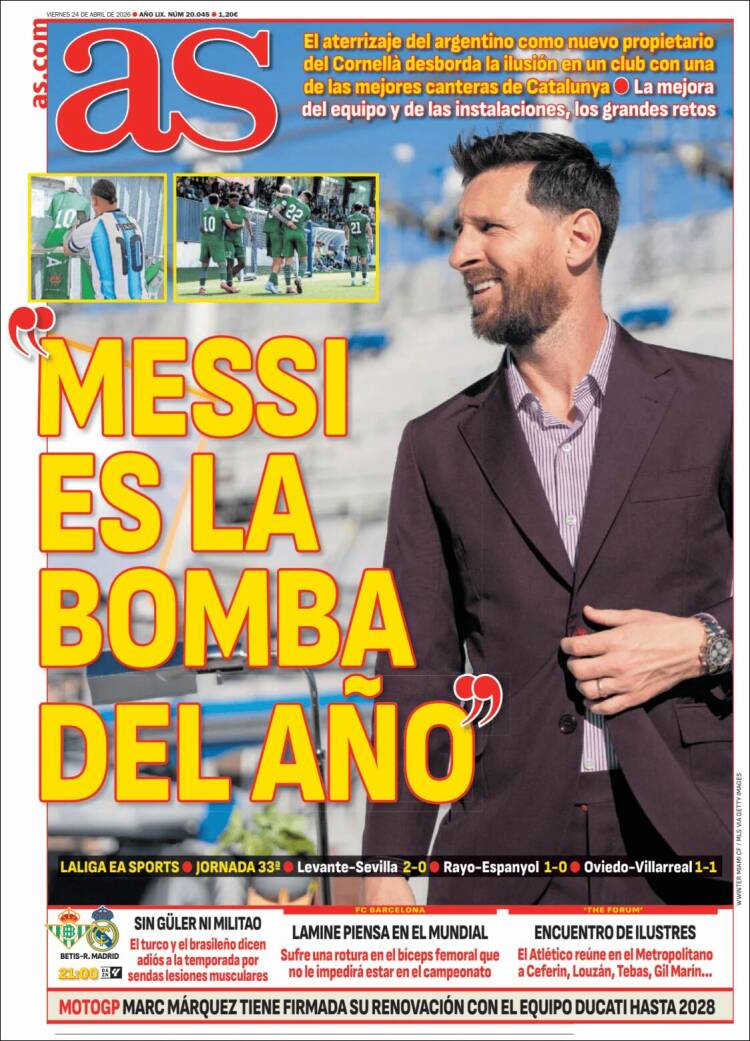 Con este estercolero institucional de fondo, As abre con que «Messi es la bomba del año» porque aterriza como nuevo propietario del Cornellà. Podían haber buscado algo de más enjundia para desviar la atención.