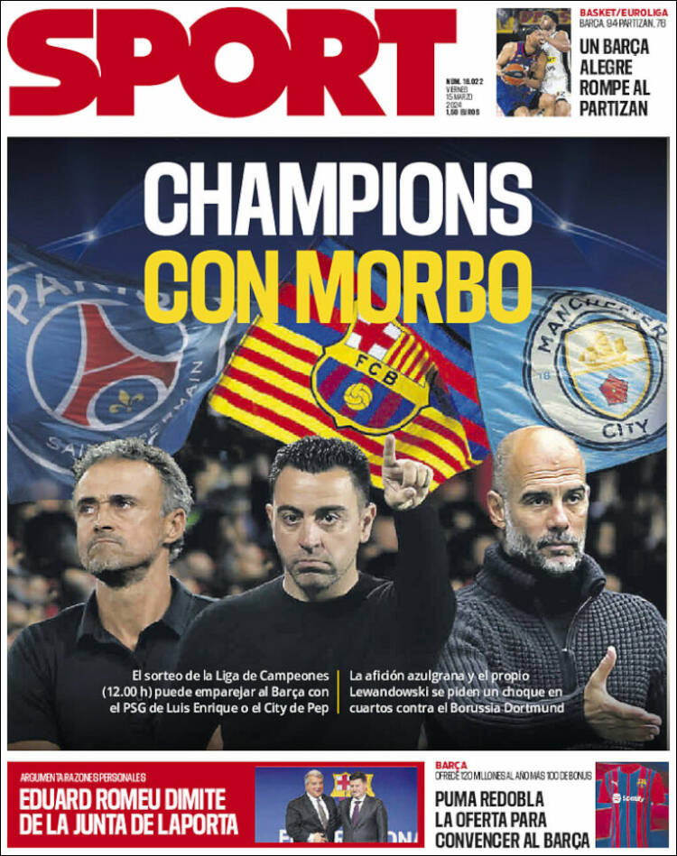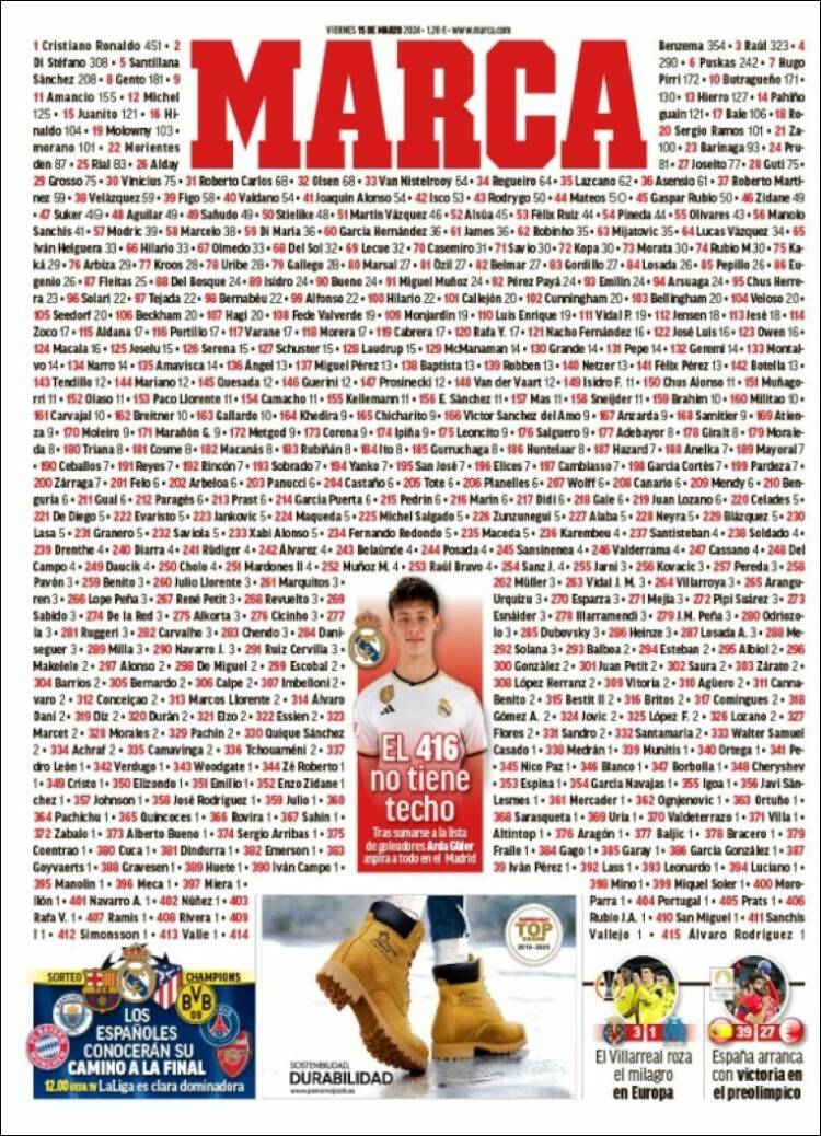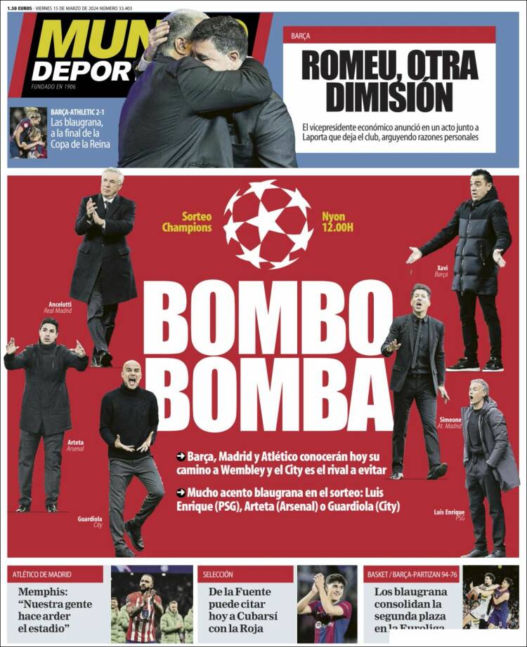 De primeras, en su aparente fealdad administrativa, se antoja una de esas portadas de diciembre que vienen con los agraciados del sorteo de la lotería de Navidad, lo que no deja de ser una de esas felices coincidencias de la vida, ya que hoy hay de hecho sorteo, no de Navidad en este caso, pero sí de Champions, a lo cual volveremos después.