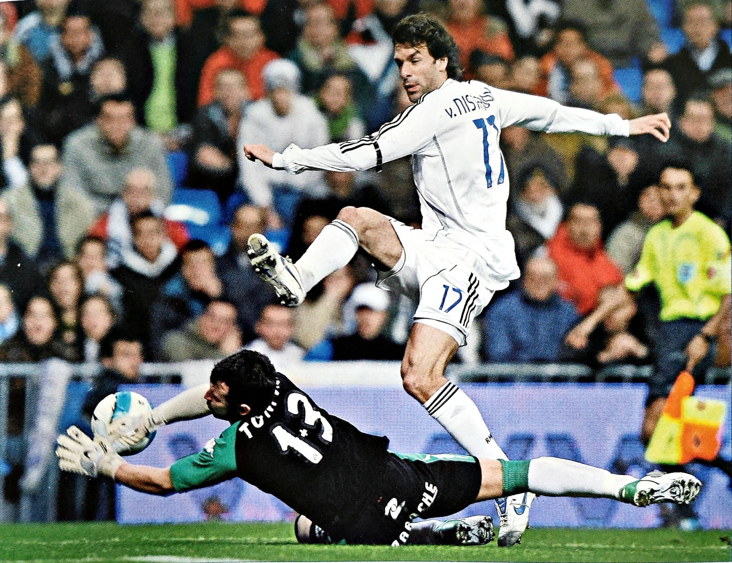 Llegaba con 30 años del United, un poco como si fuera un desecho de tienta. Era aquel tiempo extraño, previo a la revolución total que sucedió al lanzamiento desde el espacio de las bombas atómicas Cristiano y Messi, en el que los jugadores de 30 años tenían fama de viejos. Van Nistelrooy llegó al Madrid como de segunda mano. Pronto se encargó de desmentirlo