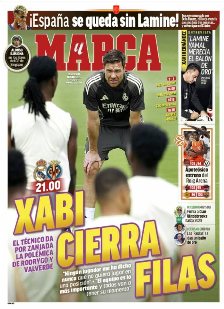 5. Buenos días, son fáciles de resolver los problemas de ego de varios jugadores que no aceptan los métodos del entrenador y son fáciles de resolver si contamos con una premisa básica, y es que el presidente respalde a Alonso a muerte, es decir el que se le ponga chulo en Enero se le pone a la venta, sino la metástasis del desorden y la indisciplina convertirá el vestuario en una cas de pvtas, yendo a lo concreto al partido de hoy, no es descubrir la rueda si afirmo que al estar lesionados los dos laterales derechos, el jugador que mejor se adapta a dicha posición es Valverde, el tema es ¿querrá jugar ahí? si dice si problema resuelto y si dice no, se le presenta un escrito para que lo firme donde reconoce que se niega a jugar de lateral, entonces la solución es fácil también, un lateral derecho de la cantera, Fortea si lo queremos ofensivo u otro si lo queremos más tradicional, la solución de ASENCIO no me gusta en primer lugar porque en la banda rinde menos que de central, y poner a Alaba un jugador casi jubilado no es solución, porque en caso de lesión o expulsión tendríamos que poner a Tchouameni de central con el consiguiente roto en el centro del campo, le veo a D. Javier Alonso haciendo encaje de bolillos, con una plantilla de calidad, pero mal confeccionada y 4-5 jugadores muy limitados por las lesiones de rodilla