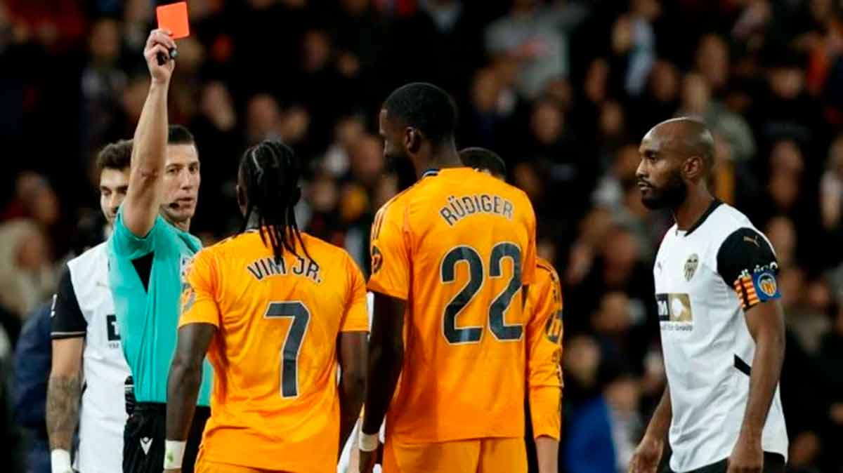 Desde el club, ¿se hace algo? El mito del poder omnímodo del Real Madrid en los despachos es tan persistente como el de ser el equipo de Franco. Y sin embargo, a la vista de los hechos, fácticamente hablando, ¿manda algo el Madrid entre bambalinas? No parece que mucho, por más que la turba grite. Por ejemplo, en la penúltima visita del Madrid a Mestalla, de la que no hace ni un año porque fue en marzo de 2024, ¡apenas diez meses!, le anularon un gol al Madrid en la última jugada al pitar Gil Manzano el final del partido de manera surrealista cuando la pelota, centrada por Lucas Vázquez, volaba hacia la cabeza de Bellingham.