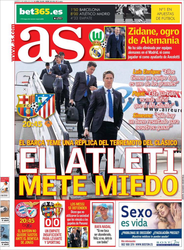 Buenos días. Hay un elefante en medio de una habitación y Marca hace como si nada. El elefante, por supuesto, es la aparición del nombre de Messi en los papeles de Panamá. Parece ser que los Messi crearon un entramado de sociedades opacas en dicho país centroamericano para proseguir trapicheando con delitos fiscales no bien se descubrió su pastel. No deja de ser paradójico que sean los dos diarios catalanes los que sí traten el tema (a su manera, claro, pero lo tratan) mientras los dos rotativos que en el inconsciente colectivo nacional siguen -inconcebiblemente- siendo madridistas ignoran por completo el asunto en sus primeras planas (en el caso de Marca) o le dedican un espacio prácticamente inapreciable (en el caso de As). Ouija y Hernia, Hernia y Ouija, en intrépido tándem, adelantan por la derecha a Sportivo en la autopista del temor reverencial por la Pulga.