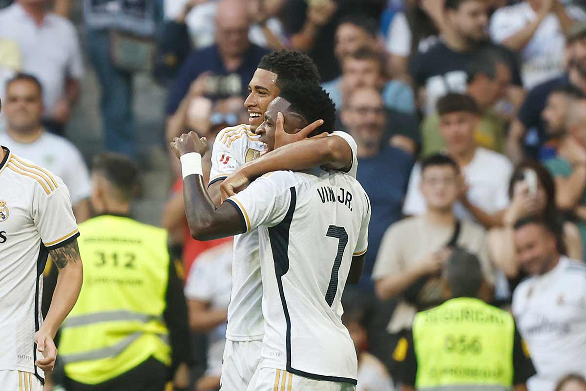 El pasado sábado el Real Madrid se impuso por 4 goles a 0 al Osasuna. Lo hizo prácticamente sin despeinarse. Dando vuelo a unos jugadores tocados con la varita del dios del fútbol. Este Madrid juega a otra cosa, es fútbol élite y moderno. Tercer partido consecutivo que se deja a cero la portería de Kepa Arrizabalaga. En esta ocasión Aurélien Tchouaméni tuvo que desempeñar el papel de central diestro en lugar del sancionado Nacho Fernández. Jude Bellingham sigue en estado de gracia y contra Osasuna anotó dos goles más para su casillero. El papel del británico está siendo estelar, estratosférico. La afición alegre y risueña está encantada. Las cuentas tuiteras de los madridistas no cesan de elogiar al centrocampista. Richard Dees llegó a comparar su celebración con los brazos abiertos con el Hombre de Vitruvio de Leonardo da Vinci. Golazo de Vinicius emulando al gran Ronaldo Nazario y asistencia de dulce para que Joselu hiciera el cuarto y cerrara la goleada.