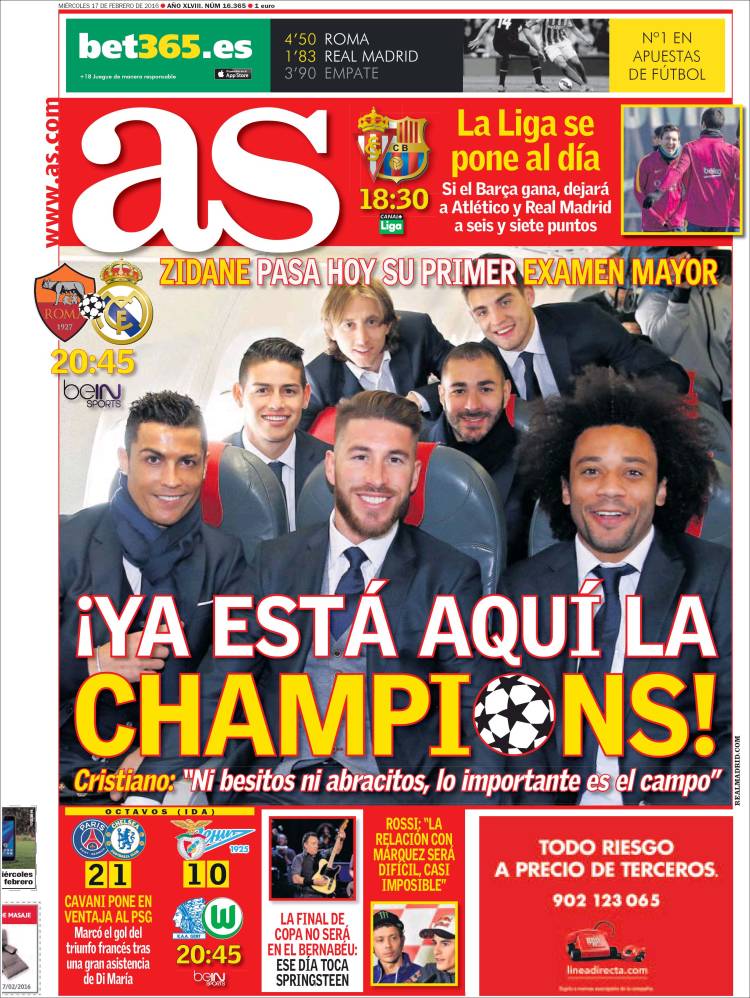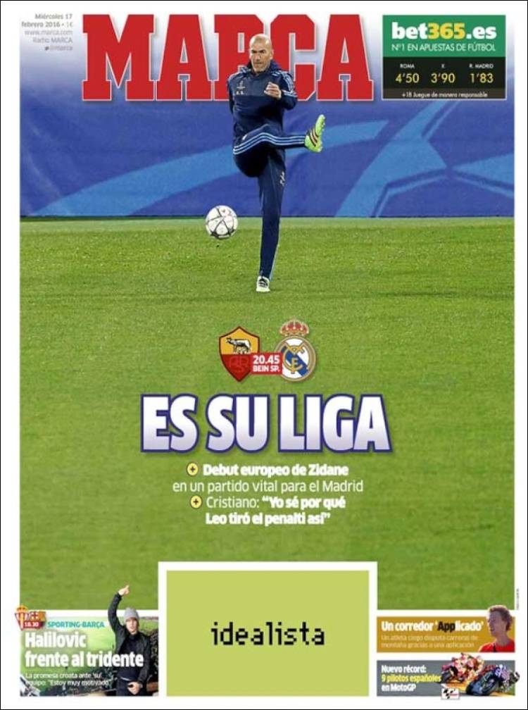 Cristiano dejó ayer tantas frases para el recuerdo y ajustó tantas cuentas que los muchachos de la ínclita prensa deportiva patria, especialmente los artesanos de la Central Lechera, han dispuesto de un extenso abanico de posibilidades para ilustrar su portada en la antesala del duelo que nuestro club disputa esta noche en Roma en los octavos de final de la Liga de Campeones. Sin embargo, así como el Marca hoy luce una portada minimal, el diario As se pierde en lo churrigueresco. Así como The Hernia Observer propone una primera plana tan conceptual que resulta en un cocido sin garbanzos, Ouija Today nos presenta una escena costumbrista digna de Sorolla. Sin embargo, éste no es el fondo de la cuestión. La clave reside en descubrir qué ha rescatado la Central Lechera de toda la rueda de prensa de Cristiano para elaborar su cacaolat de todas las mañanas. Podrían, por ejemplo, haber zanjado una de las cuestiones que ocupa la agenda mediática de la prensa madrileña desde los albores de los tiempos: la tristeza de CR7 y su fidelidad al Real Madrid. Sobre este respecto ayer Cristiano habló en cristiano: “Me siento bien, feliz, estoy en un club que me da cariño, juego siempre, hago goles de vez en cuando, no puedo estar más feliz que eso, en el mejor club del mundo”. No lo verán en las primeras planas de la prensa deportiva que prefiere apostar por dudosas maniobras de trapecista para confundir al aturdido espectador de este circo periodístico.