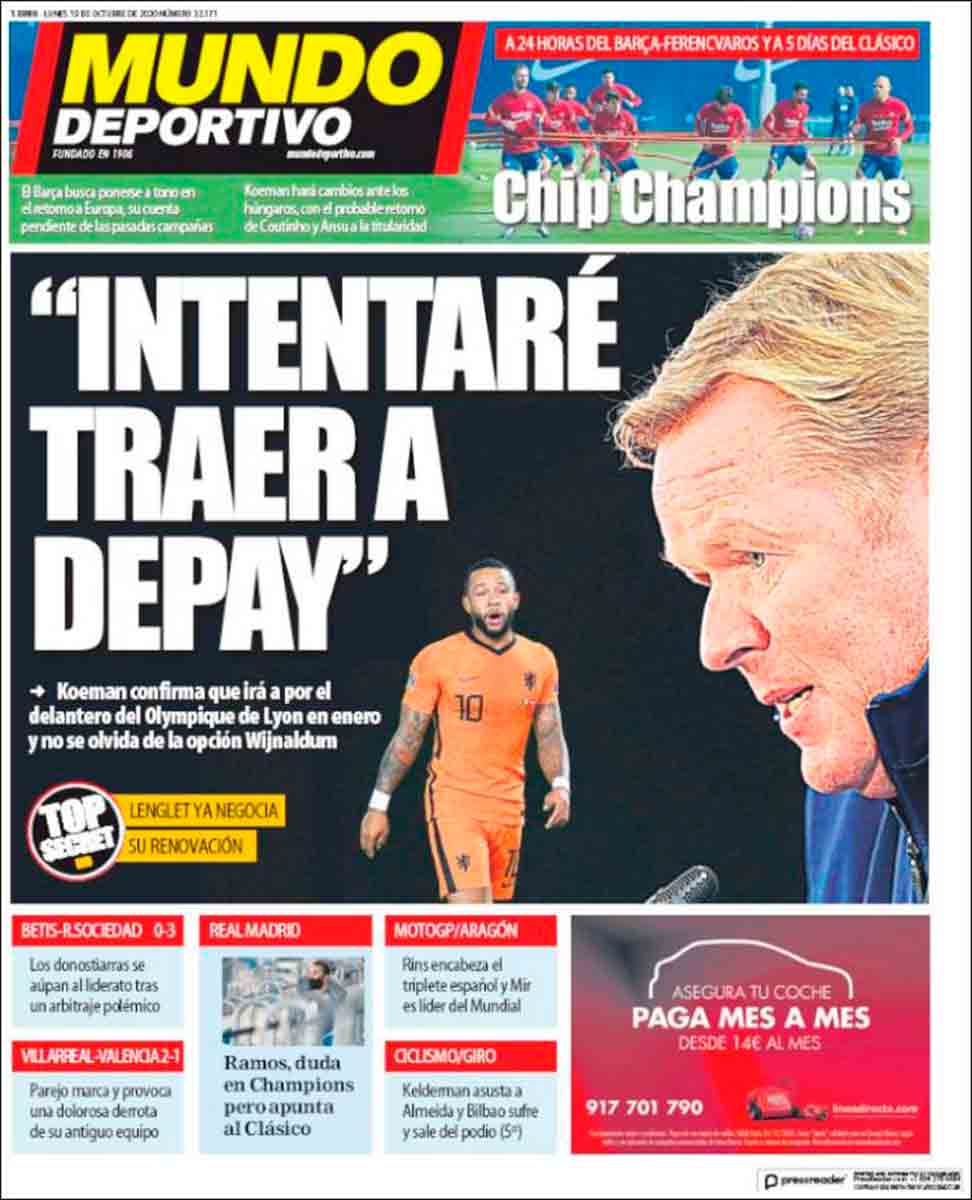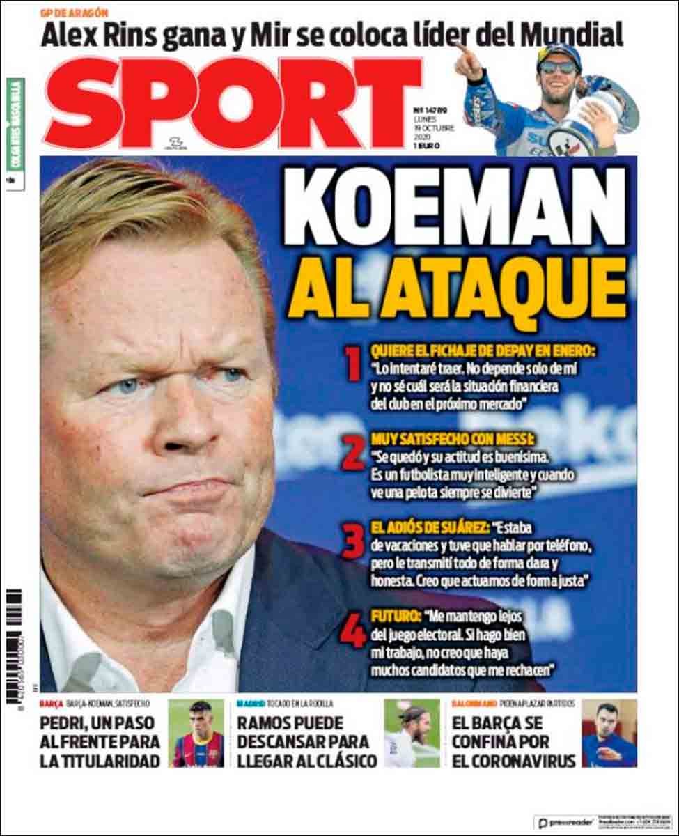 Portada Sport Koeman al ataque Portada Mundo Deportivo fichaje Depay
