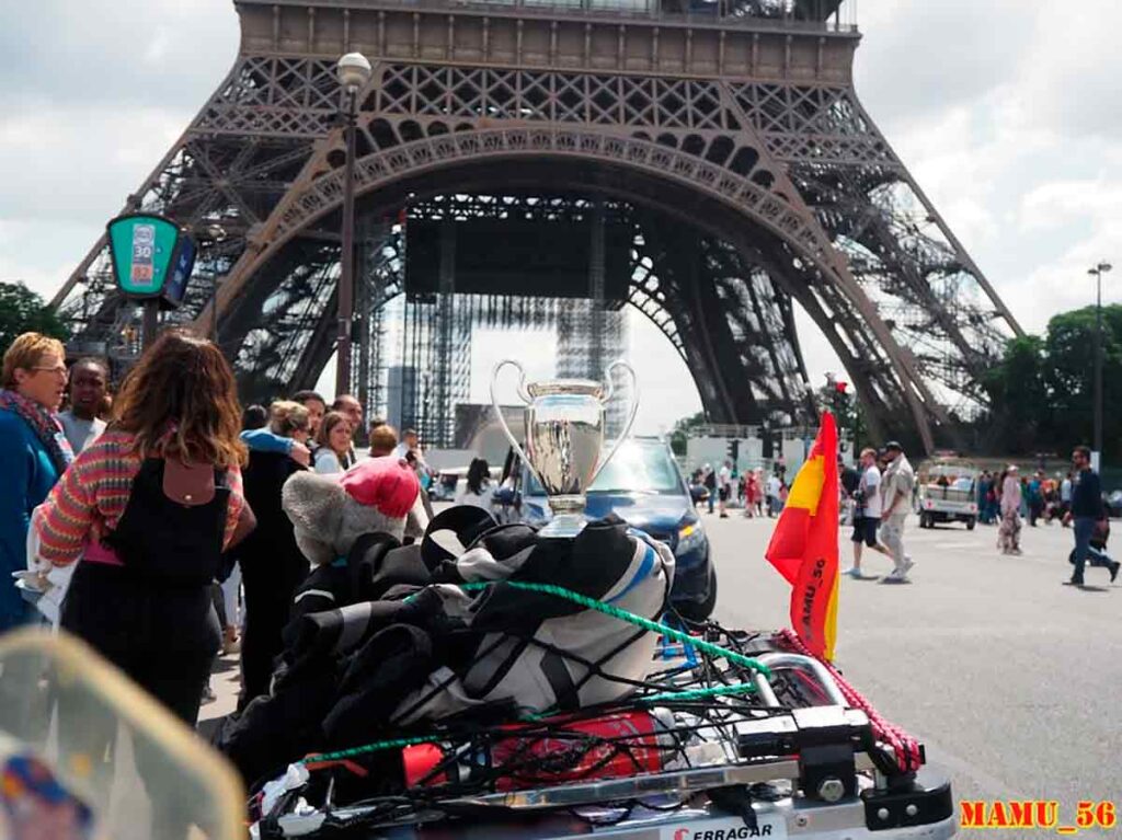 Nuestro intrépido viajero fue testigo de la vorágine que vivió la capital del Sena durante esas horas previas al encuentro. Disfrutó en primera persona del ambiente desde la Torre Eiffel. Incluso presenció cómo se las gastan en la “Ciudad de la luz”: sólo unos segundos para robar todo lo que llevaba en el maletero. Son hábiles esta gentuza… Y es que la Vespa levanta también recuerdos, retratos de la infancia: la tuya y la de tus familiares. Fue así como vieron la Vespa de Mamu y le ayudaron a acercarse al estadio de fútbol. Incluso le dieron el mejor consejo: “si no tienes entrada para ver el partido, vete de aquí, porque se va a liar parda”. Hecho. En Vespa, a pie o en coche. París fue el escaparate de un bochorno que vio todo el mundo durante varios minutos. Inseguridad, robos, ultrajes, miedo. Liberté, égalité, fraternité. Ahí es nada, my friend. A la pregunta de… ¿y si llega a perder? Martín lo tiene claro: “ni se me pasó por la cabeza pensar que iba a perder, las finales están para ganarlas y eso es lo que hace siempre el Real Madrid”.