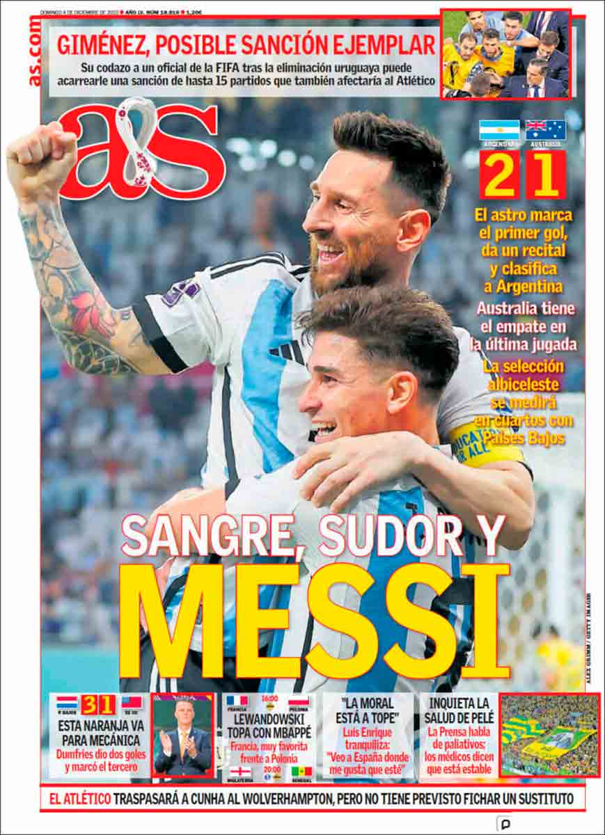 Así que "sangre, sudor y Messi", "otra vez Messi" y "Messi vuela a cuartos" como enésima trilogía romántica para eternos adolescentes, de venta en todos los quioscos, a la espera de hacer las delicias de todos los corazones enamorados, sensibles y tocados por la magia. Love is in the air everywhere I look around, donde around significa Messi.