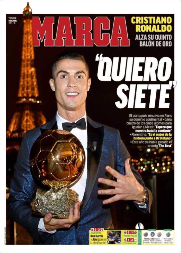 De igual manera, y así como el Madrid puso en otro plano aquel título colectivo, Cristiano Ronaldo ha dignificado en los últimos años un trofeo individual que estaba francamente devaluado, y lo ha hecho a base de remontar también. Partiendo de un 4-1 a favor de Lionel Messi, que casi todo el mundo consideraba lapidario, Cristiano ha logrado empatar a títulos con el argentino. Esta hazaña, fruto de su inmensa magnitud como futbolista y de su pétrea determinación como persona, es la que ha vuelto a hacer grande el Balón de Oro. La negación a la derrota por parte de Cristiano, su completa incapacidad para conformarse con ser segundo, ha obrado el milagro, y mediante la consecución de este milagro el Balón de Oro vuelve a ser una cosa medianamente interesante y dotada de alguna trascendencia deportiva y humana.
