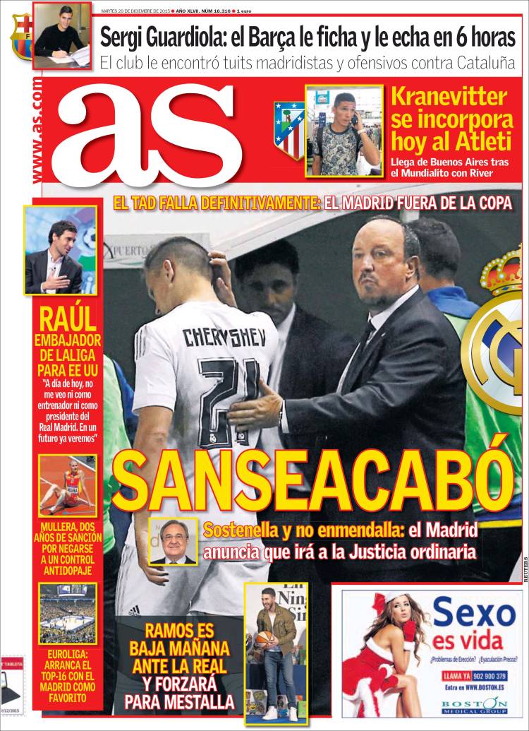 Por lo demás, y como indica Marca, el club prosigue en su "desafío total", y hará muy bien en enfrentar la vía contencioso-administrativa. La resolución del TAD no ofrece la menor prueba de lo único que había que mirar bien para saber si el Madrid estaba bien o mal sancionado: la existencia de una prueba de notificación correcta el Real Madrid y al jugador, puesto que, como bien comentaba Jorge Martín Jorgeneo en su colosal artículo en La Galerna, lo único que ha trascendido es un fax en el cual la Federación Española informa a la Federación Valenciana (y por tanto al Villarreal) de la sanción, y lo hace en fecha en la que Cheryshev ya no militaba en el Villarreal. A ello hay que añadir la admisión -que la resolución pone en tela de juicio de manera pasmosa- del Villarreal de la no notificación por su parte a Cheryshev. Seguiremos abundando en este tema con algún artículo más.