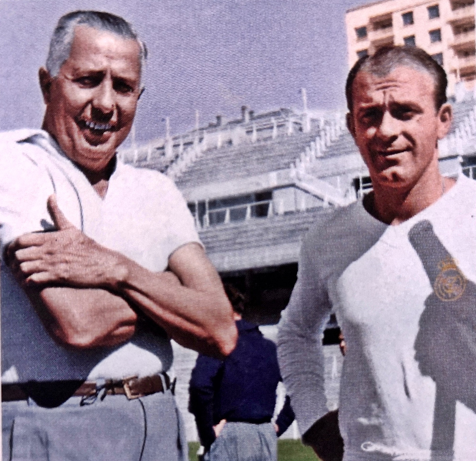 También ensalzó la figura de Bernabéu: “Creo que hay un hombre que la simboliza; lo trato y conozco de hace poco tiempo; pero me atrevo a afirmar que, en el presidente, en don Santiago, está el símbolo de la entidad, tan definida por su trato a los jugadores. Él conoce a fondo lo que es la convivencia dentro de un marco de tolerancia y, diríamos, de filial amistad. Con una exacta compresión de todos los problemas, y no son pocos, ciertamente, que plantea la estructura profesional del fútbol moderno”. Respecto a lo que esperaba del futuro del equipo comentó que “yo solo puedo decir que la plantilla del Real era muy buena la pasada temporada, y en esta debe serlo más, ya que ha recibido y va a recibir los refuerzos que todos conocemos. La moral de los jugadores es excelente, y el deseo común de cuantos estamos implicados en la tarea es volver a ofrecer a la entidad la satisfacción máxima, porque ese es nuestro deber y porque se ponen a nuestra disposición los mejores elementos para lograrlo”.