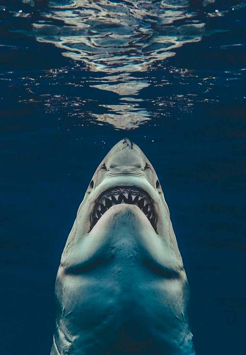 Ese tiburón, BLANCO por supuesto con el escudo del Real tatuado en la aleta de meter miedo, era un admirador de Don Santiago (+) que había venido nadando desde Australia para conocerlo.