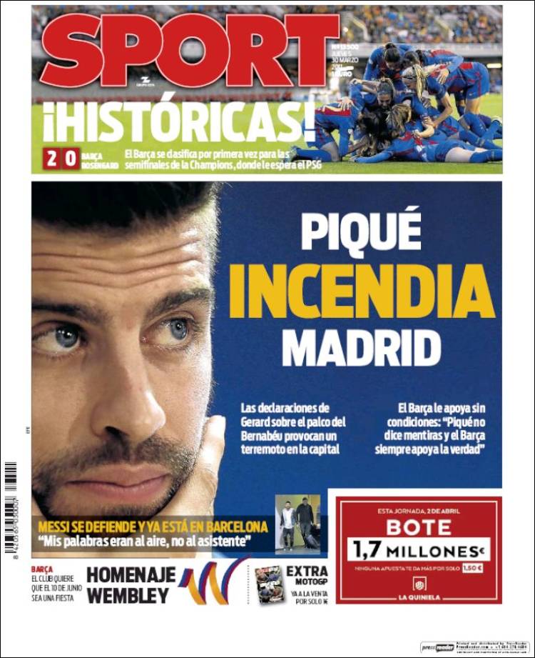 4. "Piqué Incendia Madrid", informa Sport a sus pequeños lectores.