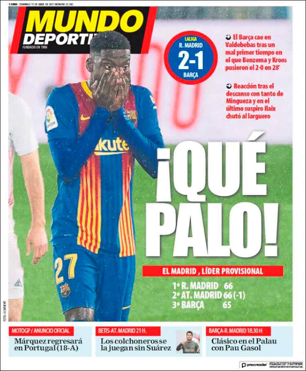 Cómo sería la jugada entre Mendy y Braithwaite que el Mundo Deportivo ni la menciona en su portada, que prefiere referirse al doble sentido del palo que supone la derrota y el palo que privó al joven Illaix del empate. En el duelo de palos hubo un empate a dos, Valverde y Vini por los nuestros, Messi e Illaix por los visitantes, aunque habrá quien diga que el duelo de palos se resolvió favorablemente para el Barça por el enorme palo que le atizó Sergio Busquets a Lucas Vázquez y que acabó con este en la caseta.