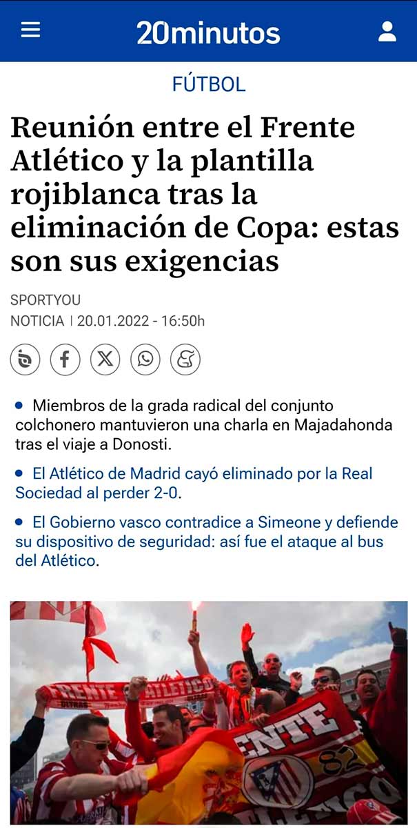 Érase una vez un club de fútbol que sigue cobijando al grupo neonazi Frente Atlético que permitió que en 2022 estos se reunieran con la plantilla rojiblanca en Majadahona tras la eliminación de la Copa y les expusieran sus exigencias.