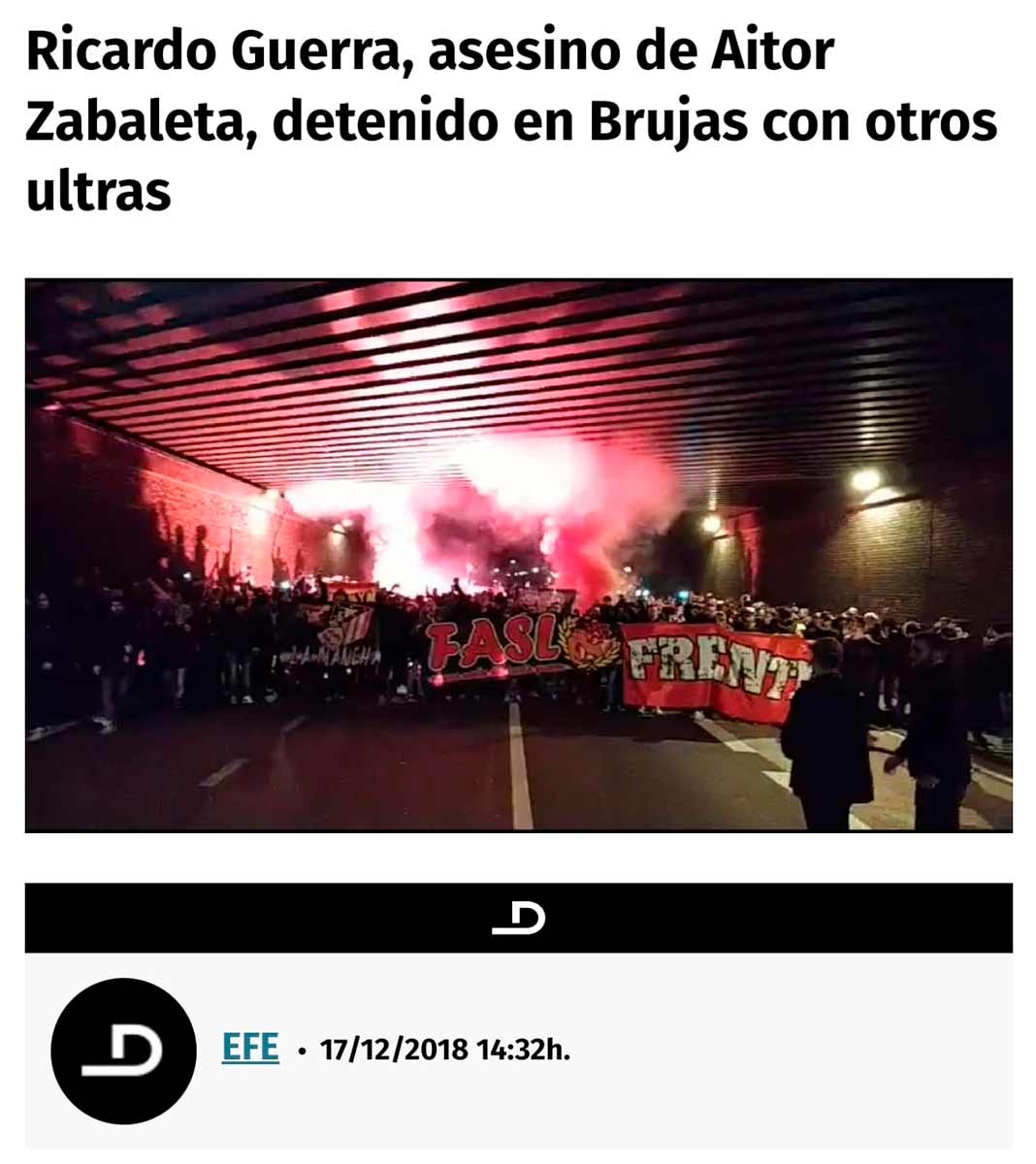 Érase una vez un club de fútbol que cobijaba a un grupo neonazi denominado Frente Atlético, uno de cuyos miembros, vinculado al grupo Bastión, llamado Ricardo Guerra, también neonazi, asesinó a puñaladas a Aitor Zabaleta, seguidor de la Real Sociedad.