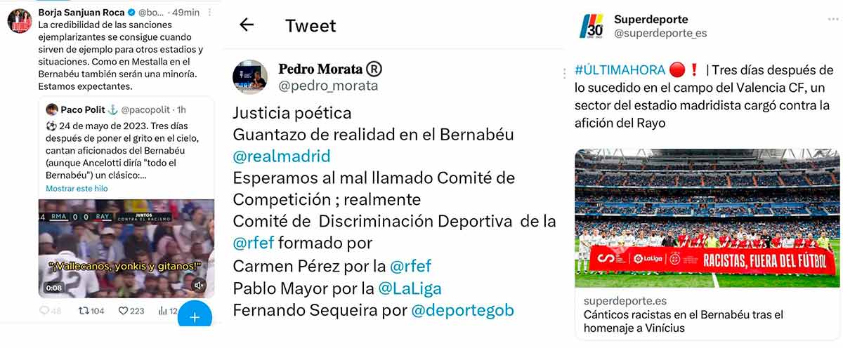 Desgraciadamente, el mensaje antimadridista ha calado. Ayer, delante del estadio Santiago Bernabéu, en plena campaña contra el racismo, a alguien todavía le quedaba odio para ir a arrancar la cara de Vinicius de un cartel en el que aparecía con Benzema. También ayer, descubrimos ya sin estupor cómo desde Valencia pretenden denunciar a Ancelotti por difamación, desde Sevilla están tratando de hacer campaña para que sus aficionados no asistan al próximo encuentro contra el Real Madrid este mismo sábado y desde varios medios directamente se está difamando contra la afición del Real Madrid por unos cánticos que profirió con ironía la propia afición del Rayo Vallecano.