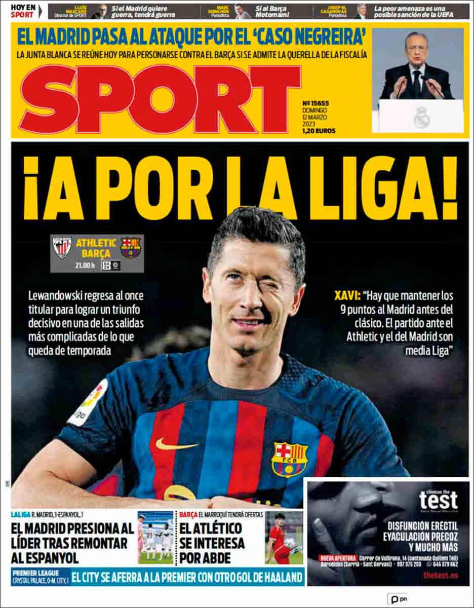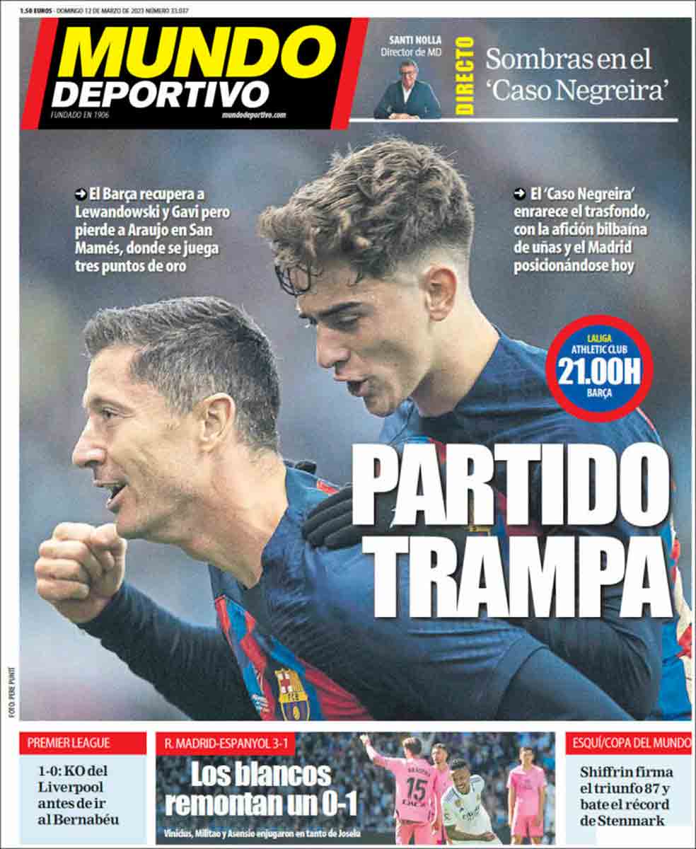Mientras llegan otros tiempos, la prensa culé sigue en su liga, recibiendo a Lewandowski y a Gavi en su once inicial para San Mamés. Cuenta Xavi que Laporta les ha dicho que se centren en el fútbol, no vaya a ser que se centren en el hecho de estar denunciados por pagarle al Vicepresidente del Comité Técnico de Árbitros para recibir un trato de favor por parte de los árbitros y entonces no salgan al campo con la tensión debida, sabedores de que, cuando la pinten calva, la ocasión será propicia para los intereses culés por el mero hecho de ser los intereses culés.