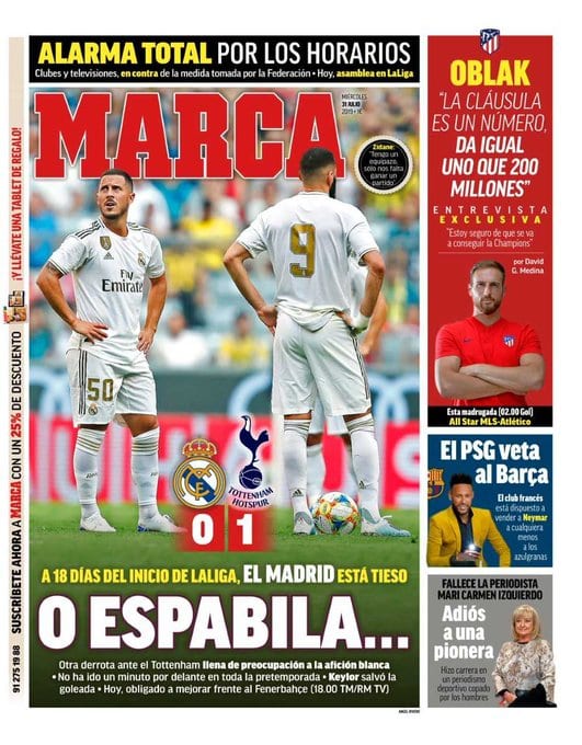 Encontramos dolorosamente cierta la portada de 'Marca', que lanza una especie de aviso a navegantes sobre lo que hay y lo que está por venir. Debe mejorar el Real Madrid si no quiere empezar la temporada envuelto en una especie de pesadilla veraniega. Arrancar bien la Liga es fundamental para no andar luego apelando a la épica o a ese dulce aroma de remontada. No es necesario estar todos los años a remolque.