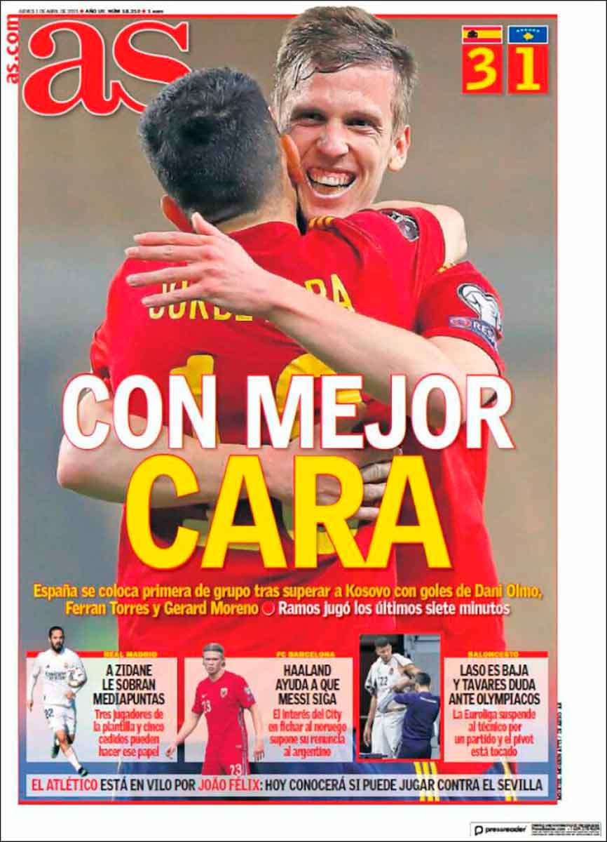 Buenos días. Hoy, Jueves Santo, no cuentan nada o casi nada del Madrid las portadas de la prensa patria, y menos mal. Cuando juegan las benditas (?) selecciones, la única noticia relativa al Madrid digna de mención suele ser la lesión de alguno de los nuestros, cosa que por fortuna no ha tenido lugar. Ramos, por ejemplo, solo jugó cinco minutos testimoniales ante esa selección de la que usted me habla, y así lo refleja el diario deportivo más leído en su primera plana.