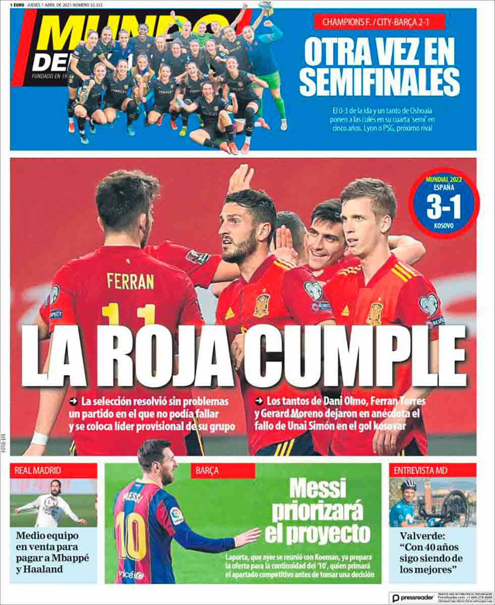 El diario del Conde de Godó, grande de aquel país antaño conocido como España (hola, Andy), nos cuenta que “la Roja cumple”. Ya veis cómo, curiosamente, en algunos ámbitos no es sólo Kosovo el país que conviene no nombrar. El periódico que pidió que se otorgase la Liga al Barça en medio del confinamiento y cuando la gente se moría a chorros, por aquello de que el Barça era líder de la Liga cuando el campeonato se interrumpió, también presta algo de atención al fútbol femenino y hasta a su principal rival en el masculino, ese equipo que viste de blanco y tiene 13 Copas de Europa, más del doble de las que exhibe en su museo la escuadra por la cual bebe los vientos el diario dirigido por Santi Nolla. Madre mía, esto de los circunloquios es extenuante.