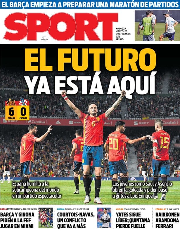 Buenos días. La selección española se exhibió ayer ante Luka Modric en un maravilloso partido en el que los hombres de Luis Enrique destrozaron a un equipo formado por un único futbolista. 6-0. Bastante hizo el pobre Modric encajando sólo media docena de goles.