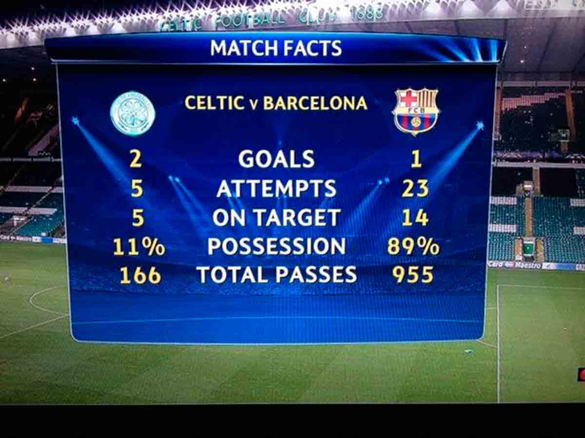 —El Barcelona ha perdido la posesión, le han metido cuatro, pero ha tenido un 67% de intención. Ha hecho un partido completísimo.