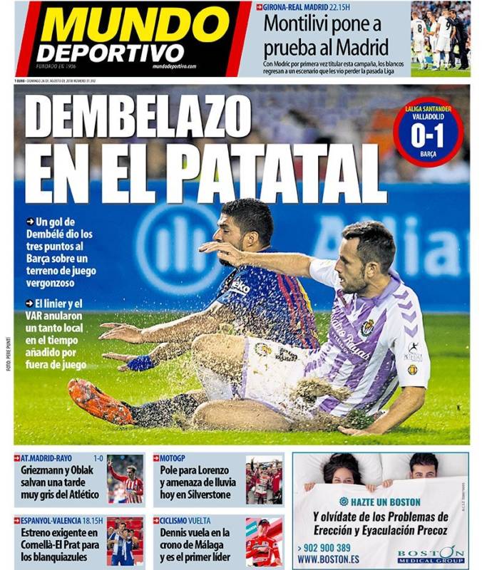 En la prensa madrileña no se hace demasiado hincapié en el tema del césped de Zorilla, pero tampoco se habla de la superioridad del Valladolid, del mal partido de Messi, de que Ter Stegen volvió a ser el mejor en un equipo de 700 millones de euros -con lo que le gusta a los periodistas eso del presupuesto-, de que Luis Suárez está pasado de peso o de que Busquets sigue yendo al suelo con una facilidad insultante. Es la prensa que tenemos y, quizá, la que merecemos, ya que consumismos lo que nos dan y seguimos consumiéndola mientras nos quejamos de ella.