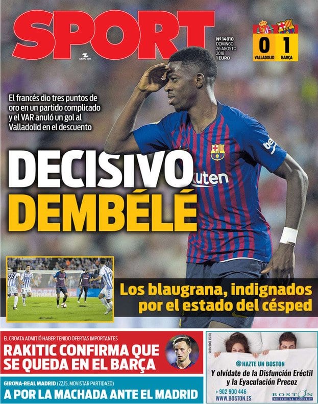 En la prensa madrileña no se hace demasiado hincapié en el tema del césped de Zorilla, pero tampoco se habla de la superioridad del Valladolid, del mal partido de Messi, de que Ter Stegen volvió a ser el mejor en un equipo de 700 millones de euros -con lo que le gusta a los periodistas eso del presupuesto-, de que Luis Suárez está pasado de peso o de que Busquets sigue yendo al suelo con una facilidad insultante. Es la prensa que tenemos y, quizá, la que merecemos, ya que consumismos lo que nos dan y seguimos consumiéndola mientras nos quejamos de ella.
