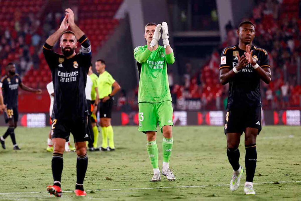 Me recordó al todos para uno y uno para todos de los mosqueteros de Dumas. Un espíritu colectivo así es la base de cualquier triunfo y el Madrid lo tiene. El equipo ha cambiado su pieza fundamental, el 9 que hacía girar al equipo y cuadraba todos sus movimientos desde la salida del balón de los centrales como si fuera un gran relojero universal, por un chico de 19 años recién llegado de la Bundesliga que empieza como cinco para acabar, casi siempre, rematando los ataques como un box to box, en el sitio de los delanteros centro clásicos. Un cambio así, tan drástico, puede llegar a descabalarlo todo si el resto de las piezas no están engrasadas con esmero. En fútbol, muchas veces, las cosas funcionan apoyadas en el sistema, pero cuando un día el sistema se gripa llega el caos. Es entonces cuando surgen las personalidades fuertes y el sentido comunitario del equipo, aquello tan espartano del escudo protegiendo el lado vulnerable del que está conmigo, pues otro protege con el suyo, el mío. La camaradería. Benzema puede estar satisfecho al contemplar desde Arabia que su testigo de jerarca está en buenas manos. Carvajal es ahora el capitán y en estos dos partidos se le nota como más autoritario y patriarcal, como si en el brazalete llevará un peso real que le recordara, como a los padres la existencia de sus hijos, que tiene siempre algo puesto en el fuego. Esa camaradería es un resorte que desde dentro ha protegido de inmediato a Lunin en el momento en el que Lunin, que hasta ahora parecía un personaje portuario contradictorio y atormentado de Conrad, ha sido puesto en la línea de fuego.