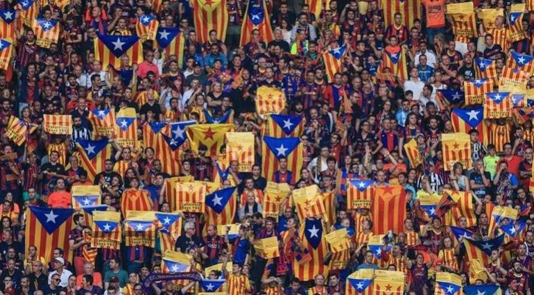 La bandera de Cataluña puede entrar en el Bernabeu como puede entrar una bandera de cualquier otra región española, de hecho esa es la que tiene que entrar y no la estrellada. La estrellada simboliza el movimiento independentista que se da en Cataluña y que tiene un componente importante de supresion de libertades......, dejar pasar la estadio el simbolo de ese movimiento es ampararlo y por tanto amparar tambien los actos que se han efectuado utilizando su putrefacto argumentario como pretexto.