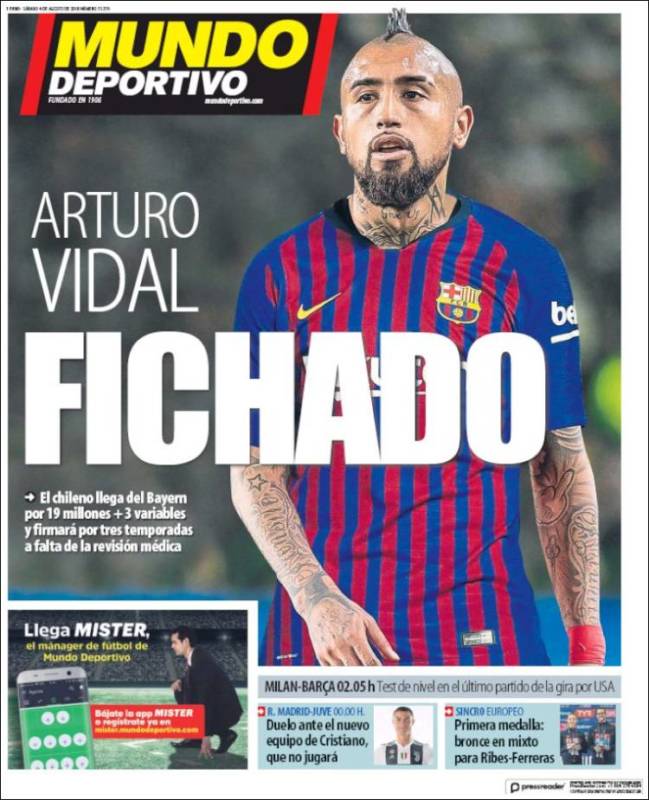 "Bartomeu (...) ha satisfecho la demanda de Valverde (...), un medio fuerte de ida y vuelta, el chileno Vidal. Una fuerza de la naturaleza que viene con la asignatura del antimadridismo ya bien aprendida".