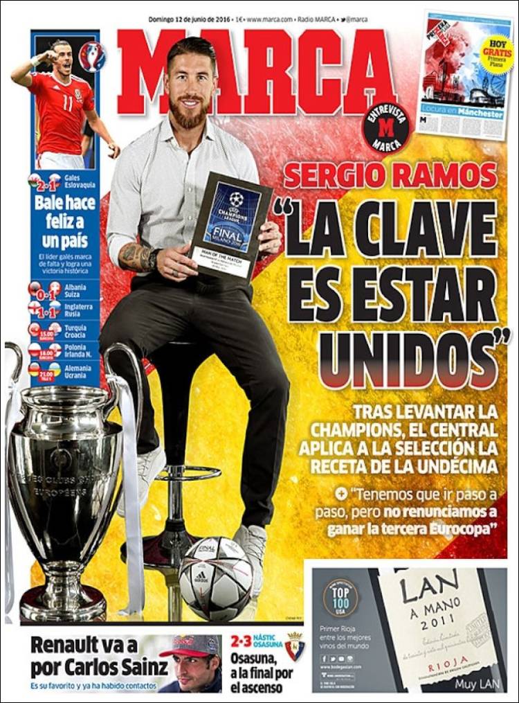 Mientras tanto, ha debutado nuestro querido Gareth en el torneo europeo, y lo ha hecho con gol, el primero de Gales en una Eurocopa. El fútbol a veces es justo y sabio; no podía ser otro que Bale el primer goleador de su país en una competición así, en cualquier competición. El laconismo de As al dar la noticia -"Bale debutó con gol y victoria"- se tiñe de mayor festejo en Marca -"Bale hace feliz a un país"-. Agradecemos el tono de Marca, pero ya nos disculparán si vamos algo más allá que el medio madrileño para atestiguar que también nosotros, sin ser galeses, estamos felices con el gol de Bale, ya sea por madridismo y hasta por justicia poética: de la hernia a marcar en el debut de su país en una Eurocopa pasando por no saber jugar al fútbol. No nos digan que no hay una evolución asombrosa en el viaje que ha hecho Bale a decir de la prensa patria.