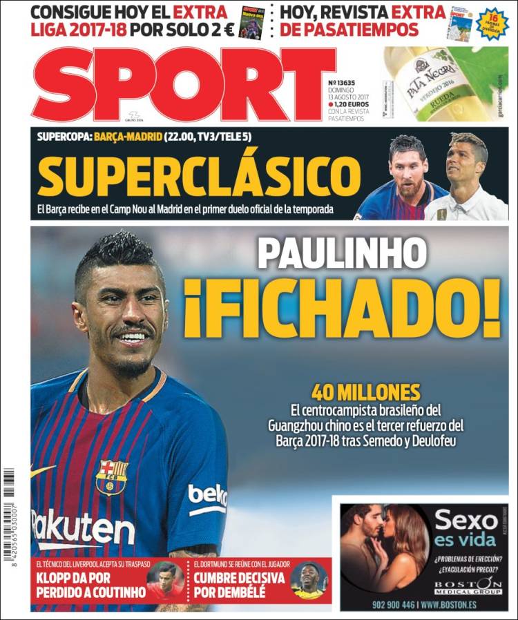 No hay Supercopa de España que se imponga al fichaje de Paulinho. Miren que nosotros querríamos no parar de hablar de que esta noche se viene partido grande, el primero de dos contra el Barcelona, en disputa por el segundo título de una temporada que aún no ha empezado de verdad. Querríamos, pero quién puede ponerse ahora a elucubrar si va a jugar o no Cristiano, cuando se ha confirmado que el Barcelona ha fichado por fin a Paulinho, procedente del Guangzhou Evergrande (por siempre grande, suponemos) de la Superliga china. Entenderán ustedes, queridos galernautas, que difícilmente se va a imponer una Supercopa, por mucho que la disputen Madrid y Barça, a una Superliga, dónde va a parar.