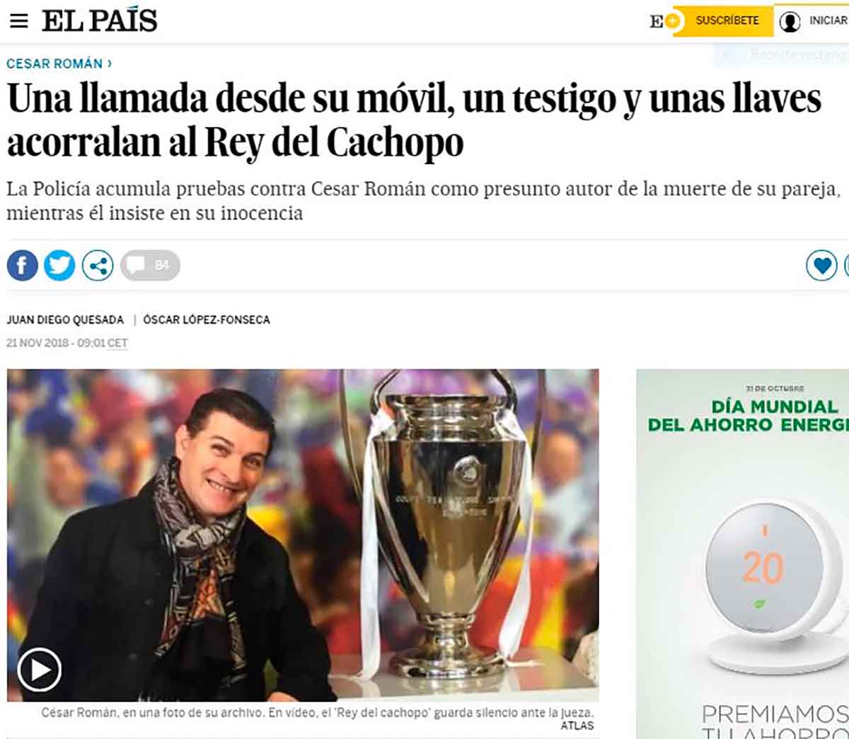 Suponemos que se marcó los 3 goles en propia meta en ese “desastroso redebut”. De todos modos, no me hagan mucho caso, yo veo fantasmas donde no los hay y la central lechera se pasa el día elogiando al Real Madrid. La caverna mediática y todo eso. El País, medio del mismo grupo que el diario As y la Cadena Ser, medios hipermadridistas ultraforofos de lo blanco, como todos sabemos, se pasó varios días hablando de un asesino atroz, falangista, empresario estafador, que había descuartizado a su joven novia y ocultado el cadáver a la policía durante semanas. Sin duda fue una casualidad que la foto elegida para ilustrar la noticia fuera esta: