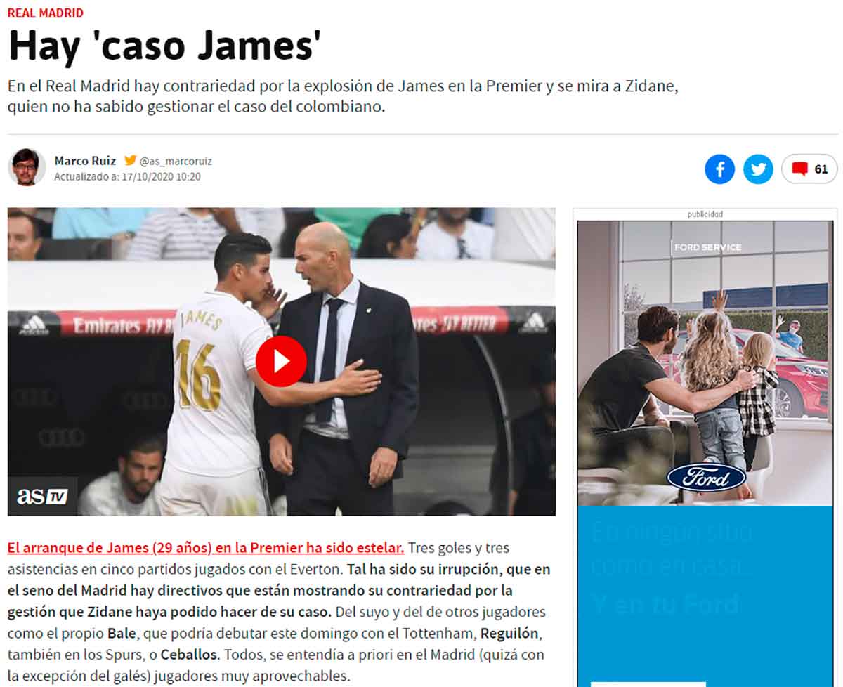 Otra vez Zidane como culpable, qué raro. Y ya sabemos que cuando el diario de Relaño la toma con alguien, le persigue hasta la extenuación y James Rodríguez les va a dar mucho juego. Ya se atreven a hablar de “caso James” y todo: