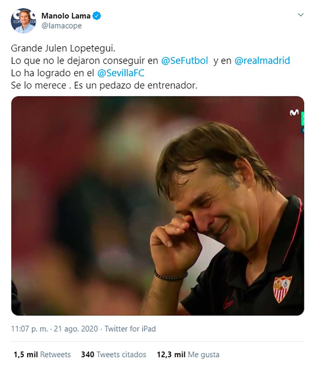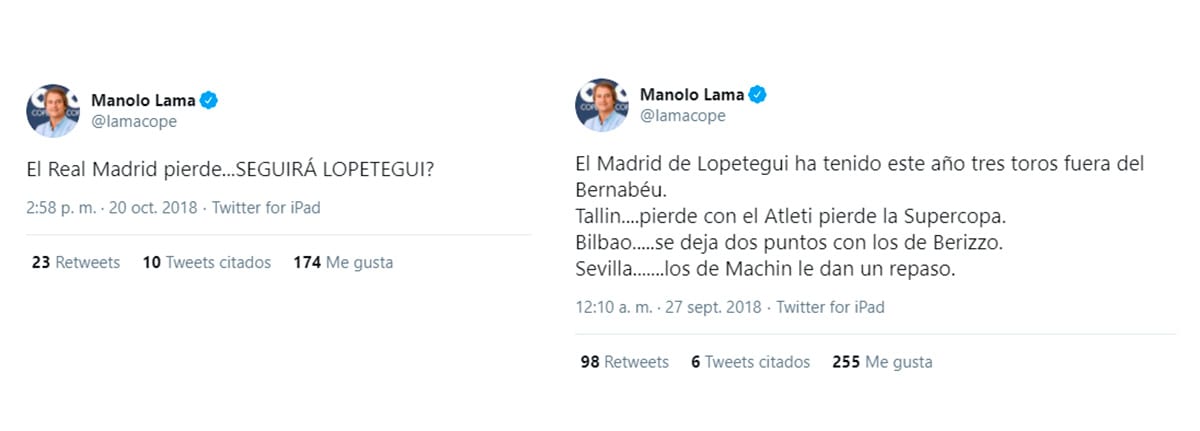 Manolo Lama es ese ciudadano periodista, que diría Richard Dees, capaz de criticar una cosa y la contraria en función de la camiseta del “atizado”. Se podía reír de la situación del Real Madrid durante la era Lopetegui: