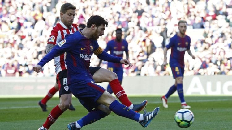 Apenas comenzado el encuentro, una internada de Etxeberría por la banda derecha la remató en gran escorzo Griezmann al fondo de la red culé.