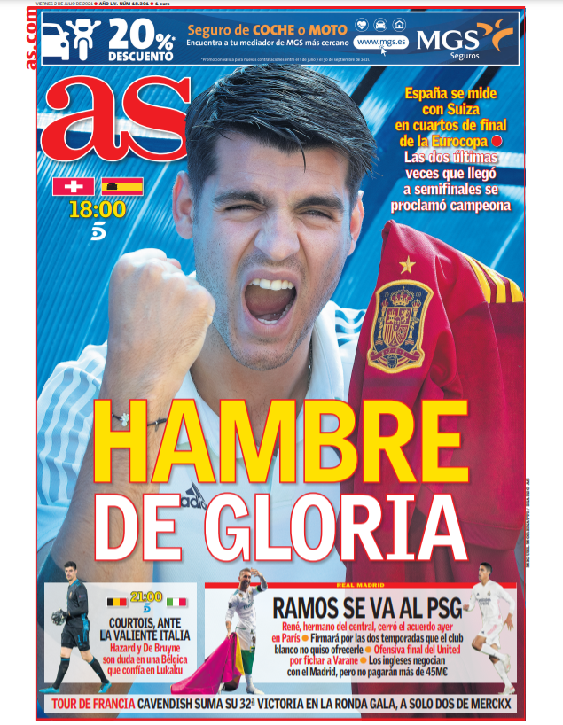 Por lo demás, las portadas se desviven en exponer los mejores augurios para la selección de Luis Enrique. A pesar de muchos pesares, nos sumamos a los mismos. España empezó con dudas, pero se desató ante Croacia. Merecen llegar lejos. Que siga la racha.