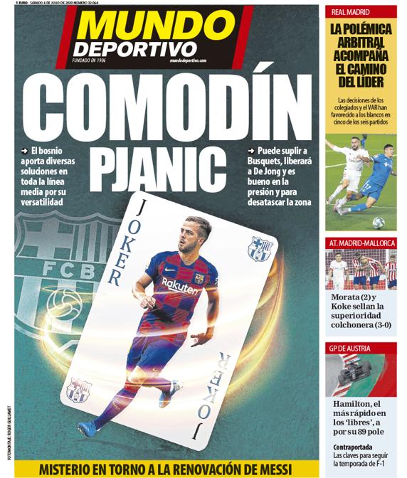 Miren si no Mundo Deportivo (gritando a estas horas, como tienen por mala costumbre. ¡Bajen la voz, hombre, que aún hay gente durmiendo!). Ahí tienen a Pjanicman, el comodín, ¡el Joker!, quien “puede suplir a Busquets y liberará a De Jong…” y hasta debe de saber mover las orejas sin necesidad de que Messi ("Misterio" llaman a lo suyo, qué eufemismo tan alipórico) dude. Eso sí, que no nos falte la coletilla arbitral del Madrid (que no, que no) que se han sacado de la manga como paliativo de sus múltiples dolencias. O sea, acusan a los demás (al Madrid) de sus fracasos, celebran la llegada del treintañero Pjanicman como si se tratara de la piedra filosofal y encima gritan a horas intempestivas. Pero hombre, amics. Un poco de respeto e incluso de dignidad. Aunque sea para permitirles a sus incautos lectores bajar a la tierra alguna vez.