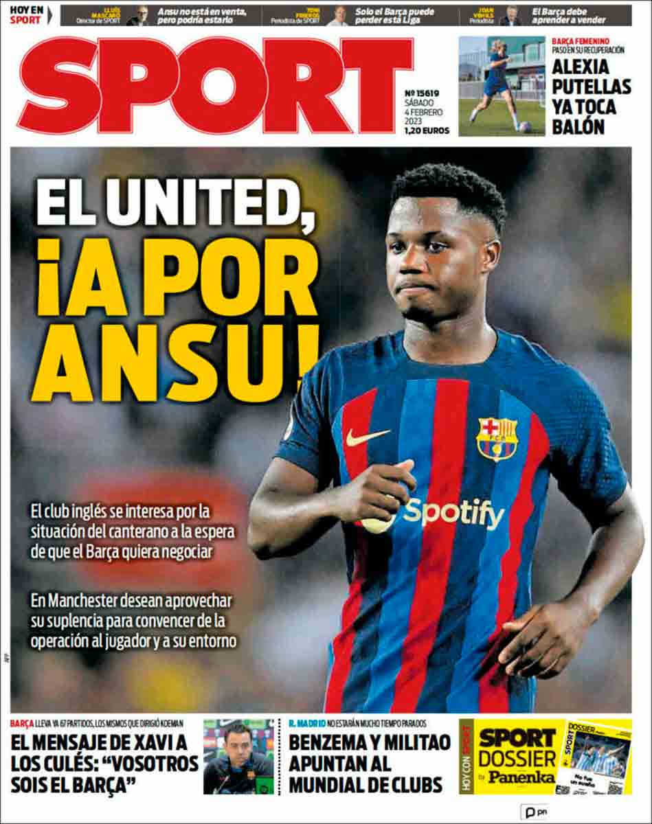 O Fati, al que según Sport vienen a buscar desde Manchester en una información que tiene visos de triple a tablero de Stephen Curry a una mano, de espaldas, sin mirar, y lanzando a canasta en Ohio desde una cancha de Esplugues de Llobregat. Ya lo dice Mascaró Wittgenstein agazapado en la azotea de su portada: Ansu no está en venta, pero podría estarlo.