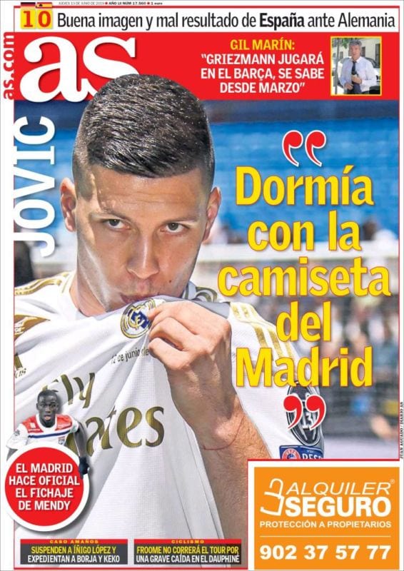 Sí, amigos. El Real Madrid hizo ayer oficial el fichaje del lateral izquierdo francés Ferland Mendy, y ved el emotivo recibimiento que le dispensa As. Relaño puede haberse jubilado, pero es indudable que su espíritu permanece en la redacción de As como el fantasma de Canterville. Es la Ouija de siempre, si bien con toques que ahora la asimilan a aquella Hernia Chronicle con la que antaño compitió.
