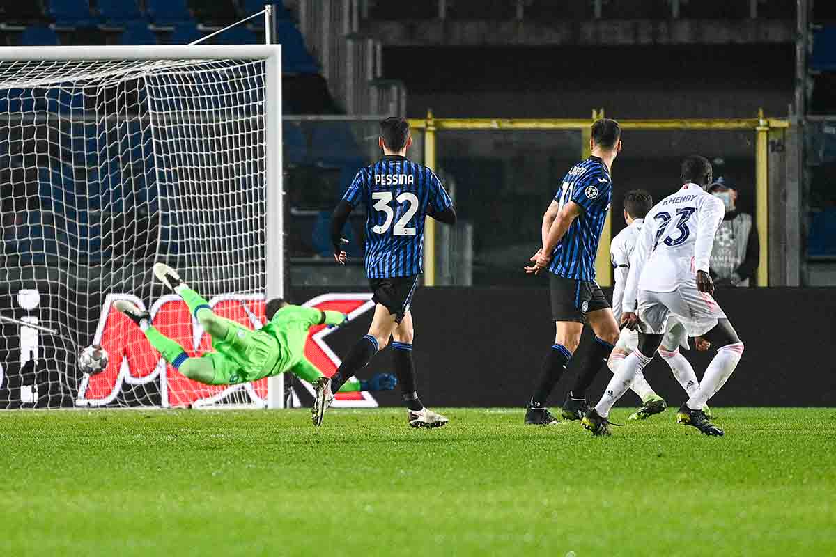 Como a Zidane se le derrumbó por los costados el invento del 5-3-2 con las lesiones de Carvajal y de Marcelo, debió pensar que sólo tenía a mano en el vestuario a un tipo que corriera como una liebre y que no se cansase. Todo el espacio que puede ocupar la estructura de los cinco defensas y los tres medios sólo puede ser cubierto por un gamo. Mendy es un gamo. Su capacidad atlética le permite patrullar su zona, abrochar el carril izquierdo y de inmediato doblar al extremo cuando el Madrid ataca. Pero no sólo eso. La brillantez de Zidane radica en transformarlo en una suerte de llegador, en un Julio Baptista entrando indetectable, como un fantasma, en ese territorio del falso 9 que nominalmente ocupaba, por ejemplo, Isco, contra el Atalanta, pero que en realidad era un ángulo muerto dejado libre a propósito por el planteamiento del entrenador para que fueran cayendo por allí como fruta madura los hombres de la segunda línea. Y Mendy, que por si fuera poco también permite a su equipo tomar aire al poder regresar a su demarcación como un rayo, sin desmontar por ello el aparato de seguridad de Zidane, que adensa al equipo al faltarle no sólo gol, sino sobre todo velocidad, energía, plasticidad y penetración entre líneas.