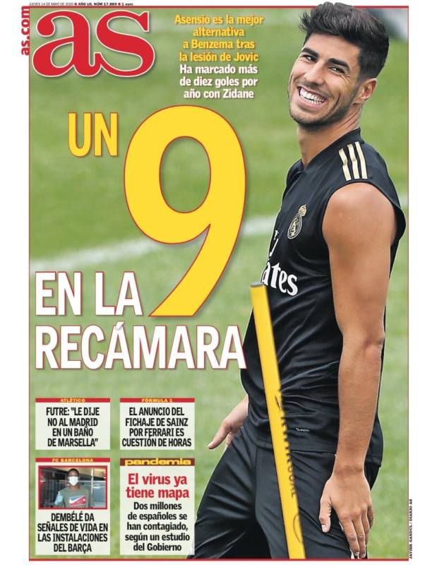 Lo que sí sabemos es que nos gusta lo que nos adelanta Marca sobre el nuevo Bernabéu en ciernes. Será un gran centro de ocio además de un templo del fútbol, lo cual solo puede redundar en mayores ingresos para la entidad cuando el ocio vuelva ser (o al menos a parecerse a) lo que era. Para eso habrá que esperar, pero llegará. Para lo que no hace falta esperar porque ya está aquí es para ver la portada de As, que se presenta con la extraña petición de ver a Asensio de 9 y con un cebo de su entrevista estrella del día, que no es otra que la del mismísimo Paulo Futre.