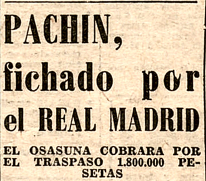 Un día como ayer, 30 de julio de 1959, el Real Madrid selló en Pamplona de la mano de Pepe Samitier el refuerzo de Pachín para el cuadro blanco. El jugador cántabro se incorporaba al equipo campeón de Europa gracias a Alfredo di Stéfano, que lo “fichó” meses antes en el mismo césped del campo de San Juan tras un partido entre el CA Osasuna y el Real Madrid.